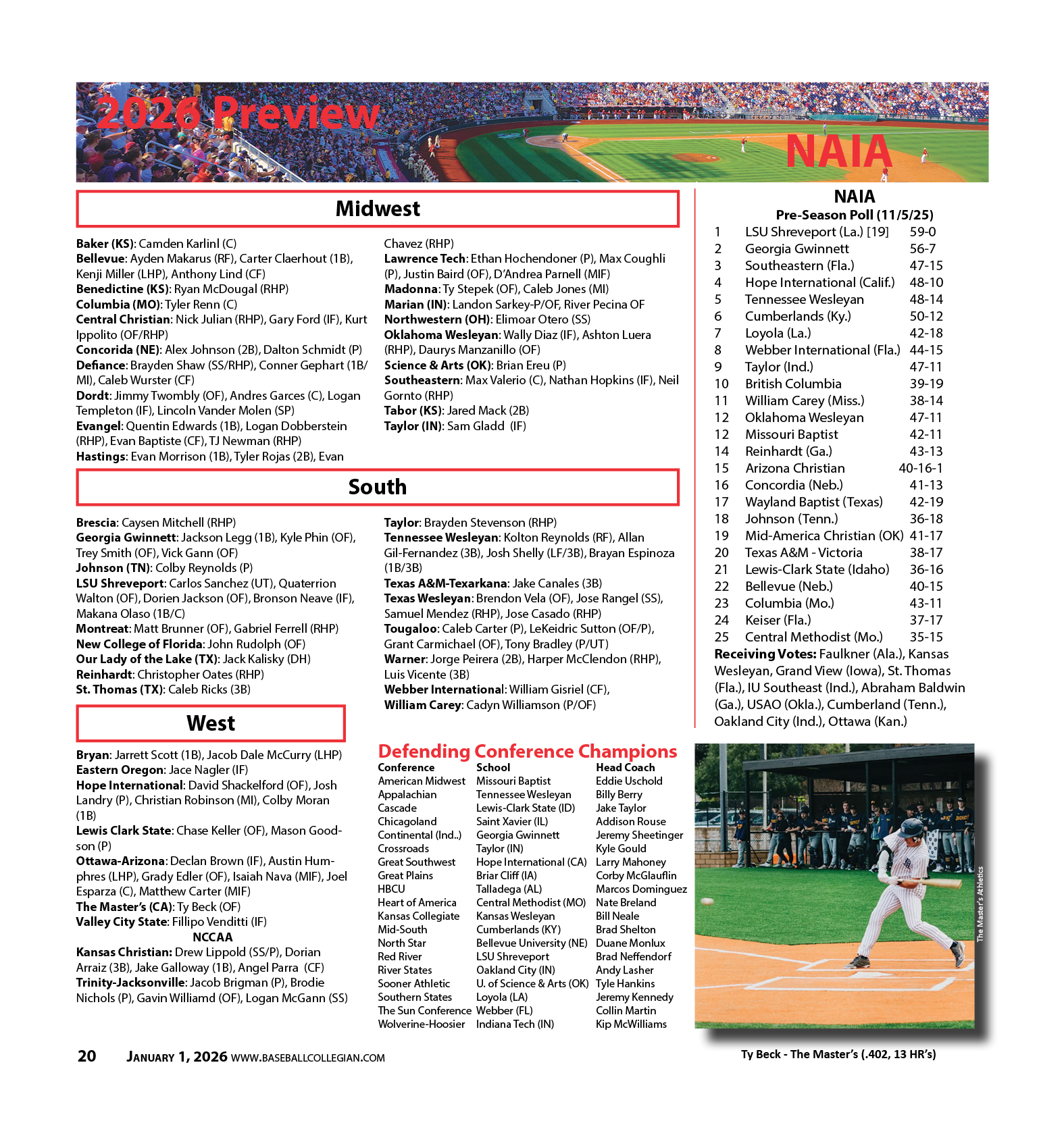 Kansas Christian: Drew Lippold (SS/P), Dorian Arraiz (3B), Jake Galloway (1B), Angel Parra (CF)