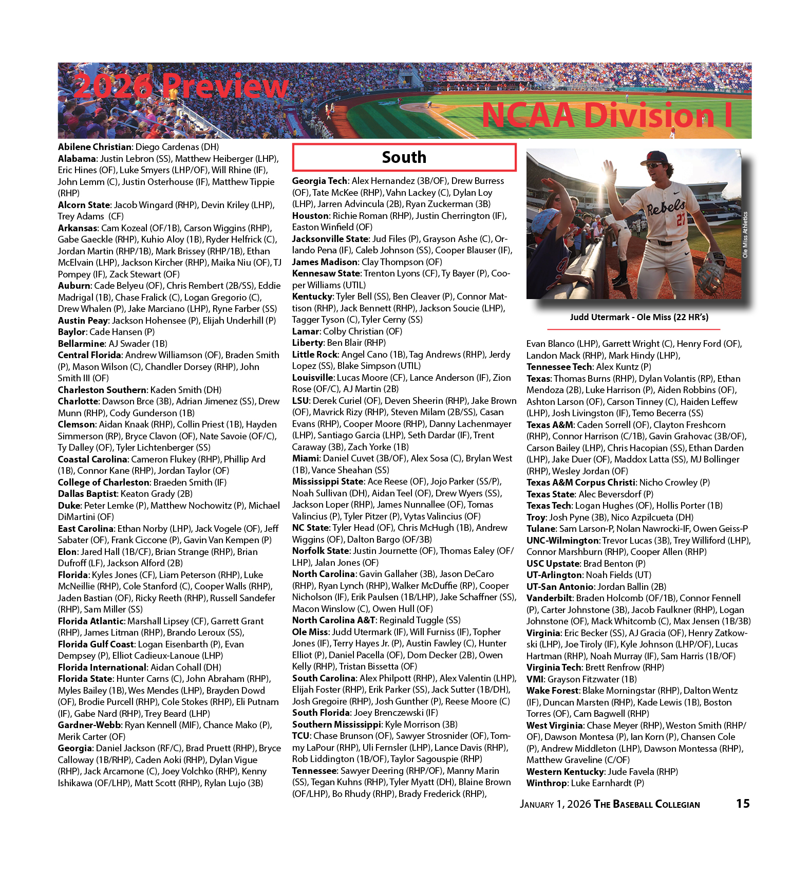 Mississippi State: Ace Reese (OF), Jojo Parker (SS/P), Noah Sullivan (DH), Aidan Teel (OF), Drew Wyers (SS), Jackson Loper (RHP), James Nunnallee (OF), Tomas Valincius (P), Tyler Pitzer (P), Vytas Valincius (OF)