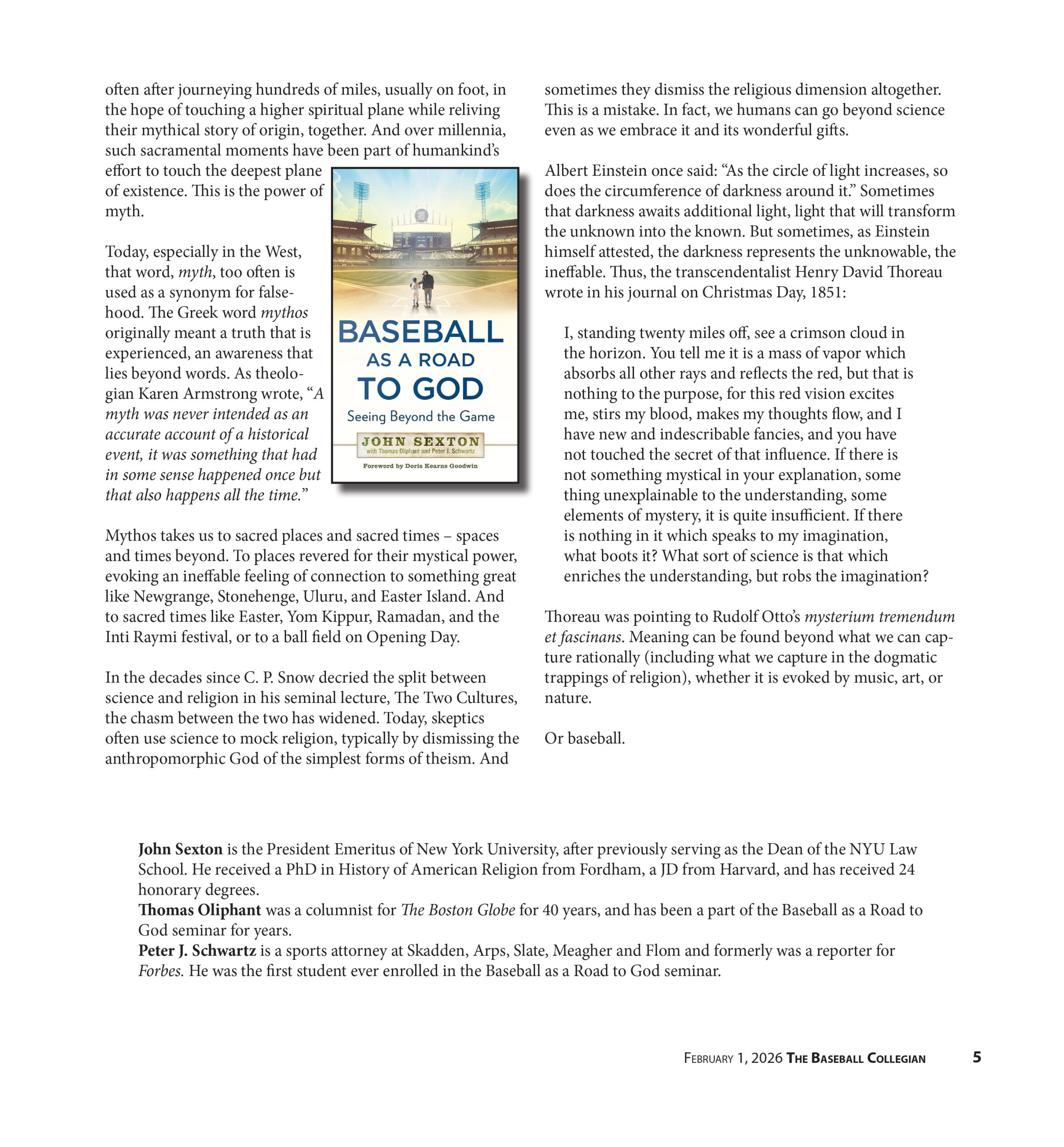 Peter J. Schwartz is a sports attorney at Skadden, Arps, Slate, Meagher and Flom and formerly was a reporter for Forbes. He was the first student ever enrolled in the Baseball as a Road to God seminar.