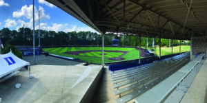 Across town is Jack Coombs Field, the home of Duke Baseball. It features an old-school grandstand and a stirring entrance where you see the field from ground level above the dugout. The stadium is next door to fabled Cameron Indoor Stadium and Duke’s 95-year-old football field, Wallace-Wade Stadium.