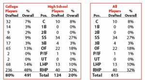 Rounds 4-20 took place, completing the draft with 615 players taken. Here is a breakdown by position and level: