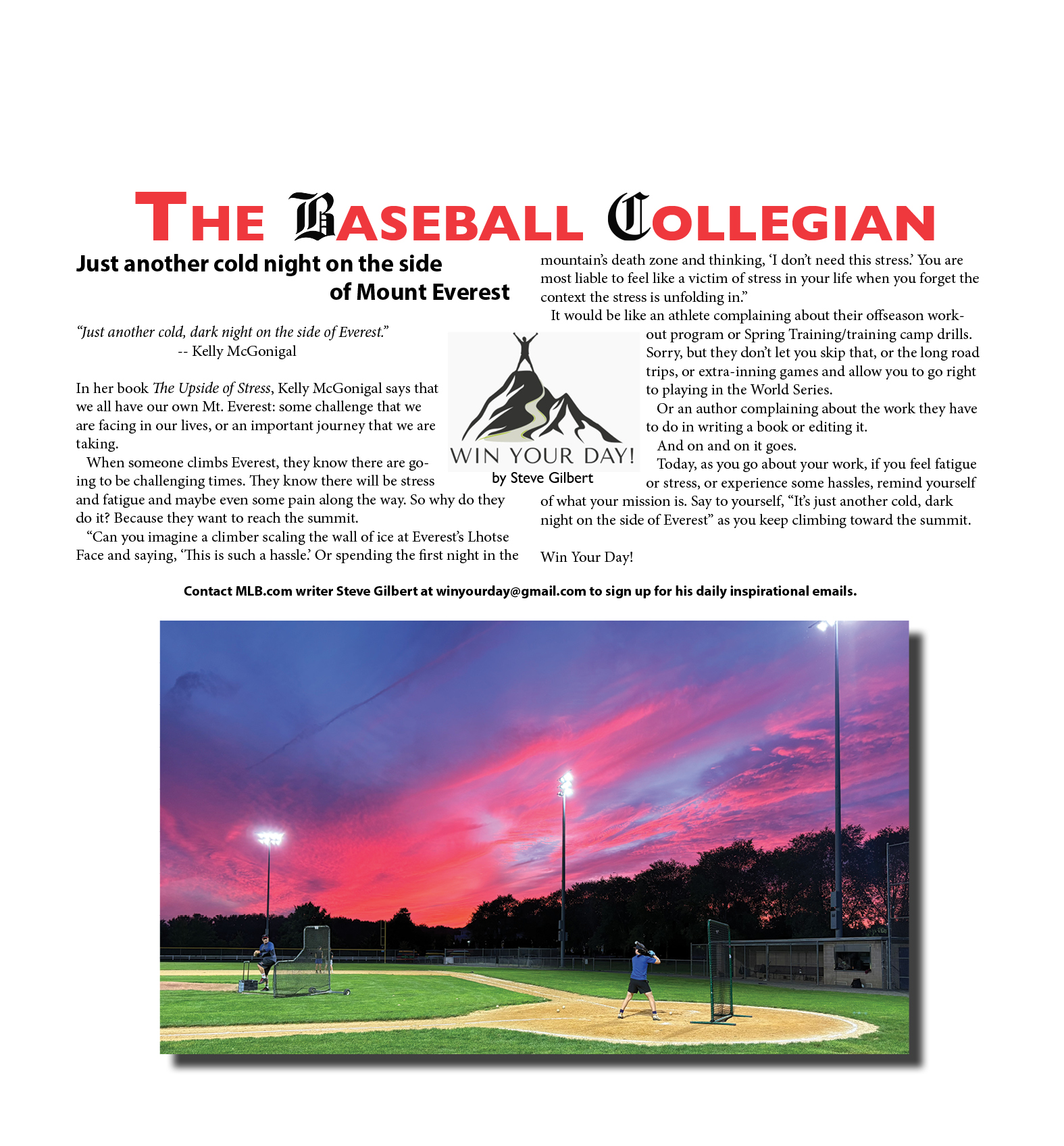 In her book The Upside of Stress, Kelly McGonigal says that we all have our own Mt. Everest: some challenge that we are facing in our lives, or an important journey that we are taking.